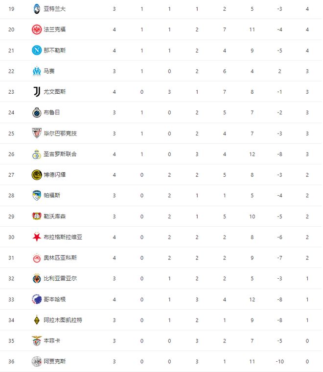 随着拜仁21巴黎,利物浦10皇马,欧冠最新积分榜:阿森纳升第二