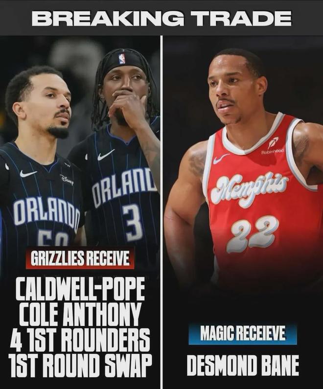 今夏,魔术做出了7换1的大交易,其中包括了4个首轮签:波普、科尔·安东尼、4个首轮签和1个首轮签互换权,跟灰熊换了贝恩。要知道,魔术真是下血本了,送出去的4个首轮签都没有保护,分别是2025年魔术自己的首轮16顺位、2026年太阳的首轮签、2028年和2030年魔术自己的首轮签。