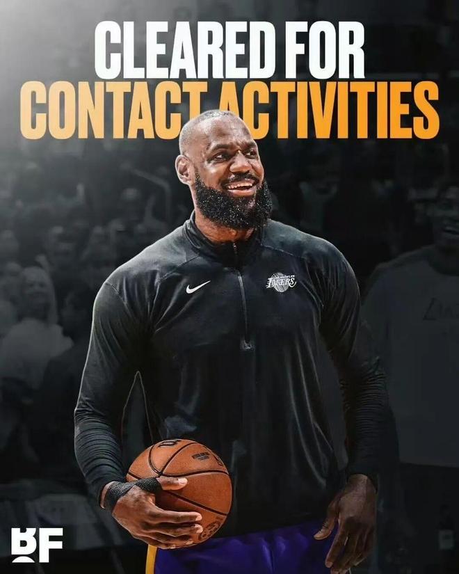好消息是:他终于要有所行动了!行动一:他正式获准参加对抗性篮球训练并且将在未来一到两周内,重新评估伤情很快逐步恢复到五对五的全场对抗训练中老詹很可能会去发展联盟与南湾湖人合练