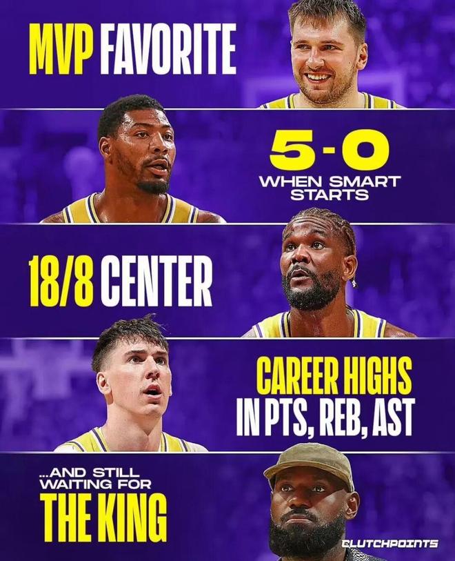 东契奇场均41分,里弗斯场均31分斯玛特:首发5战全胜艾顿:场均18分8篮板夯夯维冠:得分篮板助攻生涯新高当我们还在调侃“老詹争最佳第六人”时媒体则认真在讨论,他将沦为第三选择这样的局面,显然不是老詹愿意看到的