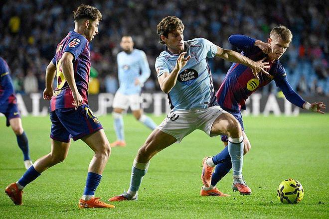 北京时间11月10日凌晨,西甲第12轮,巴塞罗那客场挑战塞尔塔。开场仅8分钟,巴塞罗那费尔明制造点球机会,莱万多夫斯基主罚破门,巴塞罗那1-0塞尔塔,不过仅仅过了1分钟,塞尔塔就由卡雷拉扳平比分。比赛中。图源:视觉中国上半场第37分钟,莱万多夫斯基门前抢点破门,完成梅开二度,第43分钟,塞尔塔由伊格莱西亚斯远射破门再次扳平比分。半场补时阶段,亚马尔推射破门,帮助巴塞罗那再次领先。下半场第73分钟,莱万多夫斯基头球破门,完成帽子戏法,帮助巴塞罗那锁定胜局。此役过后,巴塞罗那在联赛积分榜上升到第2,只落后皇马3分。上游新闻综合 编辑 周杨