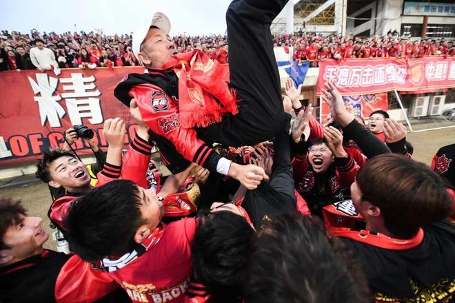 主裁的终场哨吹响,铜梁龙替补席的球员疯狂地冲向场内,大家相互拥抱、击掌,向余望、李镇全声嘶力竭地呐喊着,“我们回来了!”他们朝着队友呐喊,也朝着球迷看台呐喊,这一个赛季对于年轻球员来讲,这一刻无疑是巨大的释放。他们曾经被质疑,也被看衰,享受过赞誉,也在低谷期承受着巨大的压力。他们对于中超的渴望,对于重庆足球的崛起,充满着主人翁该有的责任感。与之形成对比的,是队内的“老足球人”。吴庆成为领队的第一年,他经历过两江竞技解散的悲剧,那天他一个人背着包离开俱乐部的背影,是他留给深爱的职业足球最难过的画面。上赛季,吴庆临危受命出任代理教练,又经历了冲超失败的苦涩。在年轻人疯狂庆祝的瞬间,他眼里闪着泪花,没有太多的言语表达,只是默默地看着身边的弟弟们,甚至是孩子们,铜梁龙之于他,已经超出了“阵地”的意义,更有他足球生命的延续。邱卫国,是张外龙回归之后召回的第一个助理教练。同样是见证了重庆足球20多年风雨的足球人,语言表达或许不是他擅长的,他与吴庆对视的那一刻,两人的眼泪早已成为彼此之间的默契。以前在两江竞技担任第一翻译的李振,曾经在球队解散之后失业良久,后来在铜梁龙才重新找回了让自己安身立命的工作,同时也找回了人生的方向。他哭着说:“日思夜想的事情终于实现了。这一刻,三年的等待都值得了。”
