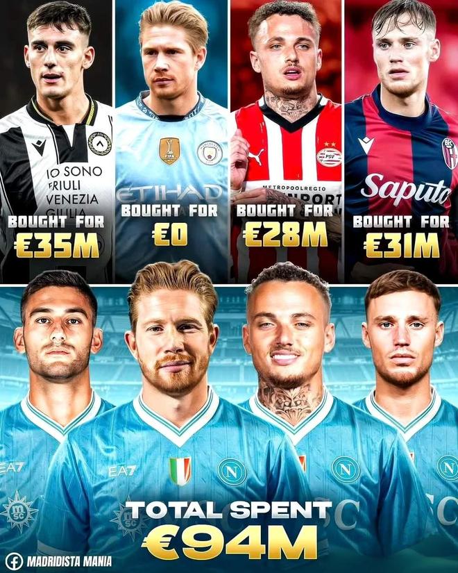 那不勒斯老板德劳伦蒂斯今年夏窗为了孔蒂同样大出血,斥资1.15亿欧引进多达8名新援,另用1000万欧的签字费和600万欧高薪免签得到德布劳内,别忘了明年夏天还需要支付霍伊伦和卢卡合计7000万欧的买断费!不过,这么大规模的引援力度并没有让孔蒂高兴,他反而三番两次表示一次性引进9人太多了,这是问题而非机遇。目前来看,那不勒斯的新援中只有霍伊伦和德布劳内算是发挥不错,但也并没有完全打出转会身价。