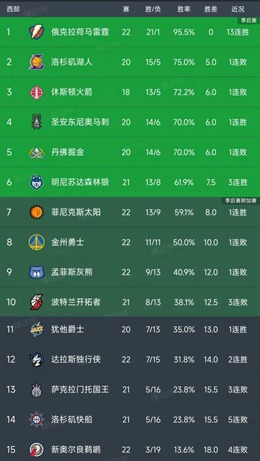 勇士第8雷霆完成了一波13胜,以21胜1负稳居第一,领先了身后的对手5个胜场。亚历山大21投13中贡献了38分3篮板,霍姆格伦12投8中拿到了21分8篮板,威廉姆斯22分6助攻。残阵勇士已经尽力了,目前的胜率重回50%,11胜11负暂列第8名,斯潘塞和波杰姆斯基都是17分,小库里首秀7投6中贡献了14分。