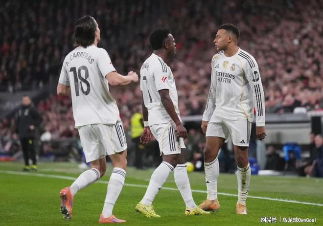 图片此役,开场仅7分钟,客队皇马就将场上比分改写!阿诺德在后场送长传,姆巴佩得球后上演一条龙劲射破门,皇马客场1-0领先毕尔巴鄂竞技。第33分钟,维尼修斯在禁区小角度尝试射门,但皮球击中立柱。