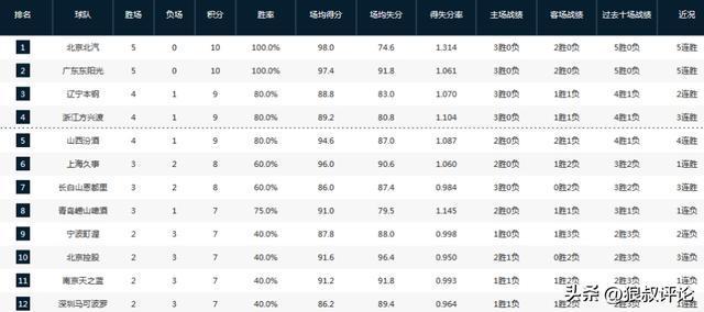 北京时间12月23日,CBA常规赛第5轮继续开打,5场比赛分别是广东93-85广州,山西103-77南京,上海97-77浙江,江苏88-84天津,广厦84-65福建。随着广东男篮击败广州男篮,新赛季开局拿到5连胜,成为联盟唯二的不败球队,另外一支5连胜球队则是北京男篮。