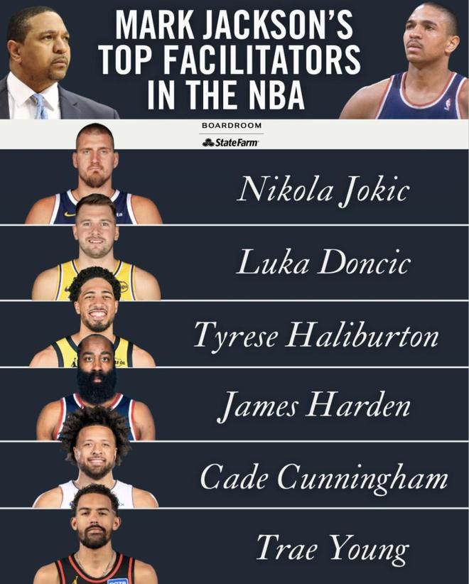 最近Boardroom× State Farm发布了“马克·杰克逊评选的NBA顶级组织者”榜单。约基奇、东契奇、哈登等球员入选,名单里还放进了哈利伯顿、特雷·杨、康宁汉姆。库里、詹姆斯这些同样以组织带动进攻闻名的球员没在榜单里。中锋和后场核心被放在同一张榜单里排序,顺序一出来,争议自然就跟着来了。(数据截至北京时间2025年12月25日)