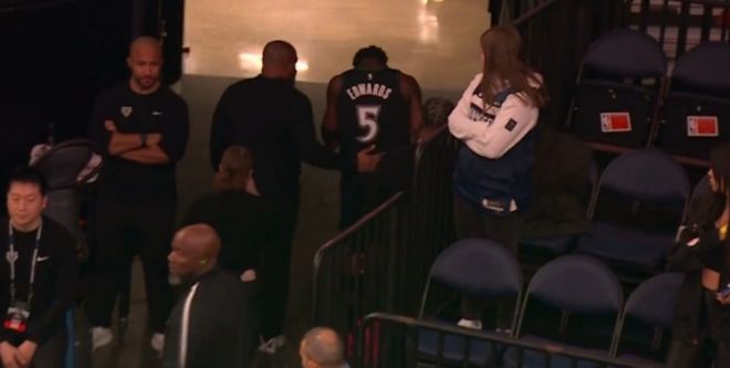 首节比赛,爱德华兹打满12分钟,6投4中砍下12分1篮板1助攻。