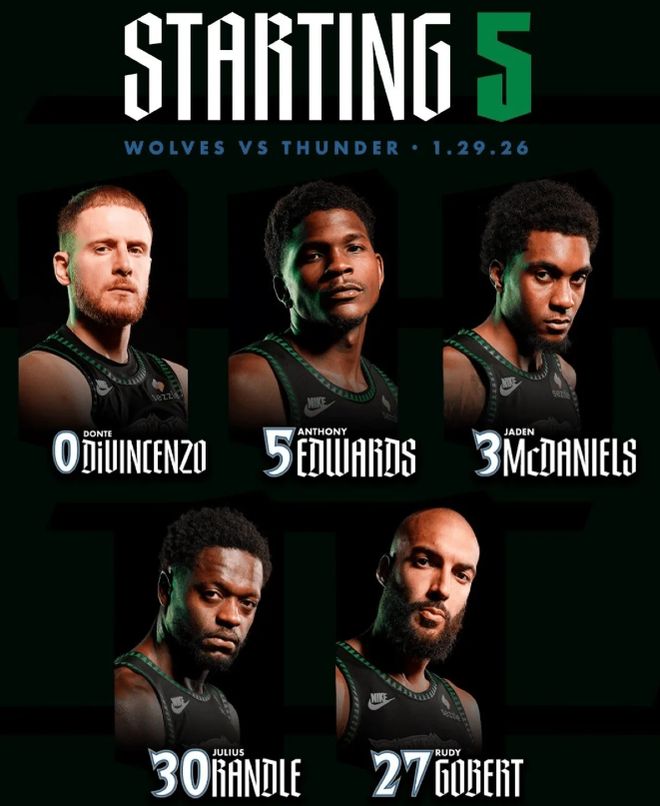 首发阵容方面,雷霆队这边,杰伦·威廉姆斯、卡鲁索等缺阵,哈腾迎来复出,主帅排出的最新首发五人组为:谢伊-吉尔杰斯-亚历山大、阿龙-威金斯、吕冈茨-多尔特、切特-霍姆格伦、杰林-威廉姆斯;森林狼队这边,小特伦斯·香农(脚伤)缺阵,首发阵容则为:迪温琴佐、爱德华兹、麦克丹尼尔斯、兰德尔、戈贝尔。