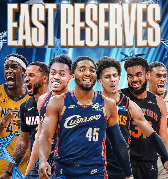 • 替补(7人):米切尔(骑士)、安东尼·唐斯(尼克斯)、杰伦·约翰逊(老鹰)、西亚卡姆(步行者)、诺曼·鲍威尔(热火)、斯科蒂·巴恩斯(猛龙)和杰伦·杜伦(活塞)。