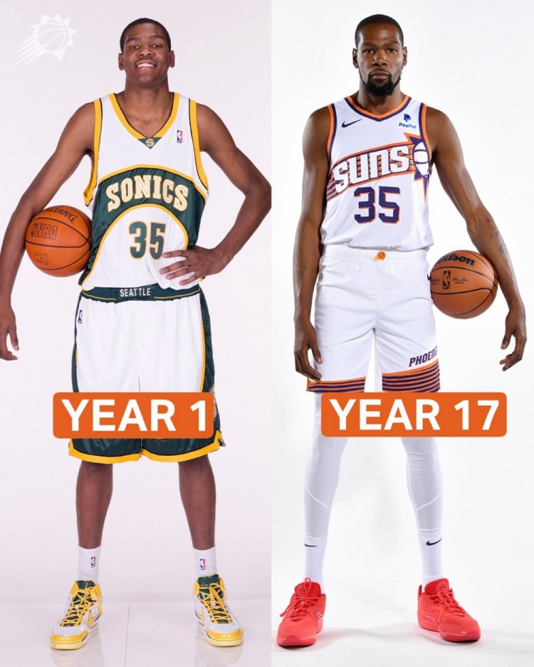 记者给杜兰特看了新秀赛季的定妆照,杜兰特笑着说道:“这是很久以前的了,有一阵子了。我这辈子将近一半的时间都在联盟打球。能在这个平台上面打球、做自己喜欢做的事情是福分。我只想继续努力训练,为自己的成就增添砝码。”
